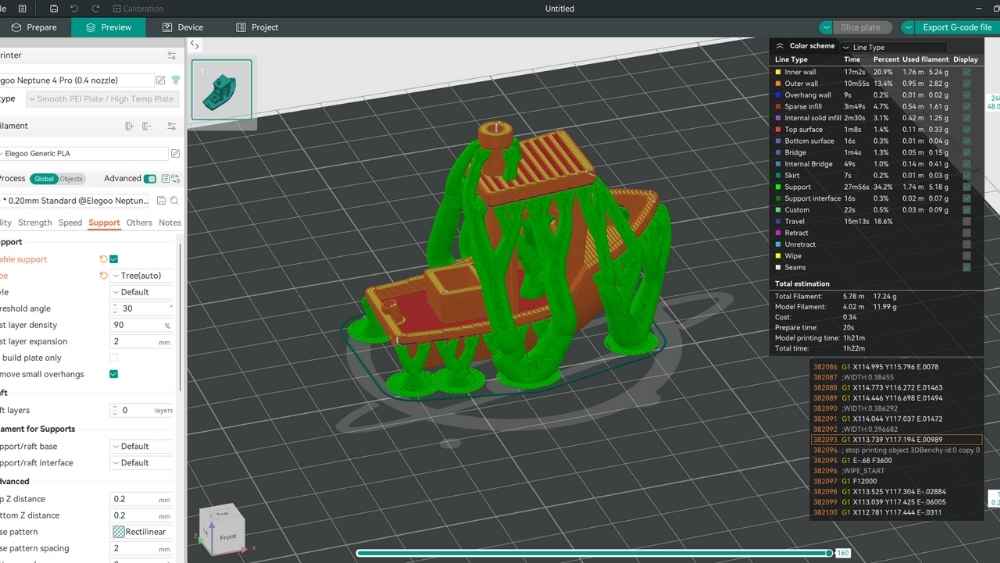 - The slicing engine delivers fast processing speeds while generating optimized toolpaths. Multi-threaded slicing handles complex models efficiently, and the preview mode provides detailed visualization of each layer including travel moves, retractions, and material usage.